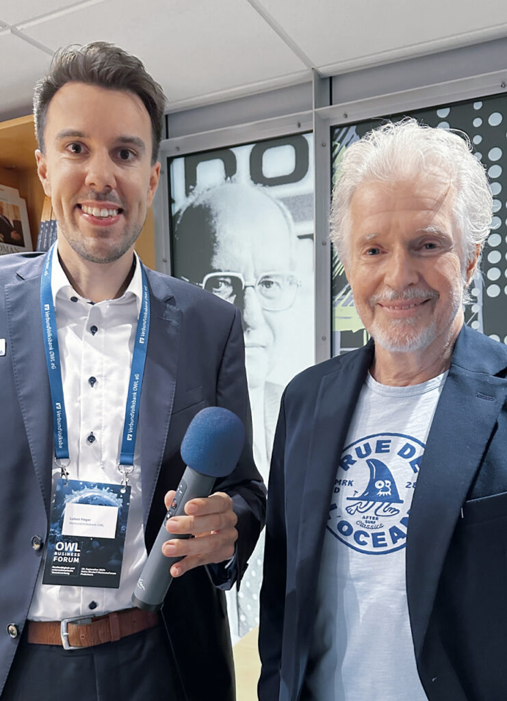Im Talk mit Moderatorin Julia Ures zeigten drei erfolgreiche heimische Unternehmer, wie es gelingen kann, Verantwortung für eine nachhaltige Zukunft zu übernehmen und diese mit Zuversicht zu gestalten. In beeindruckender Weise schilderte Roland Damann aus Bad Lippspringe, wie er mit seiner MicroBubbles GmbH eine völlig neuartige Technologie geschaffen hat, die mittels feinster Gasblasen Mikroplastik aus dem Wasser eliminiert.